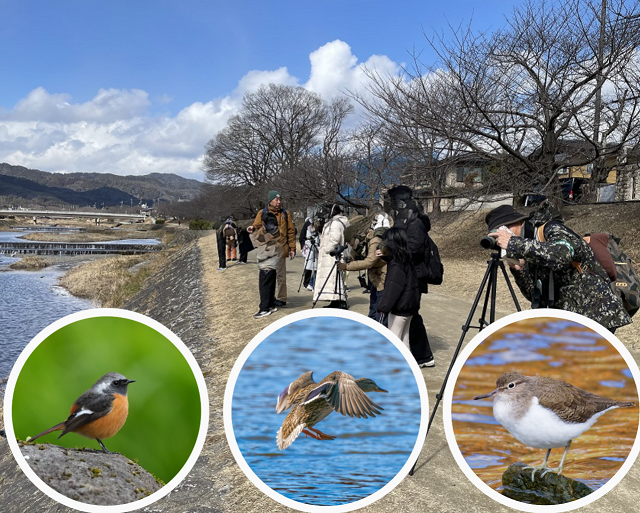 日本野鳥の会京都支部のみなさんが双眼鏡やスコープをつかって、鳥のみかたを教えてくださいます。